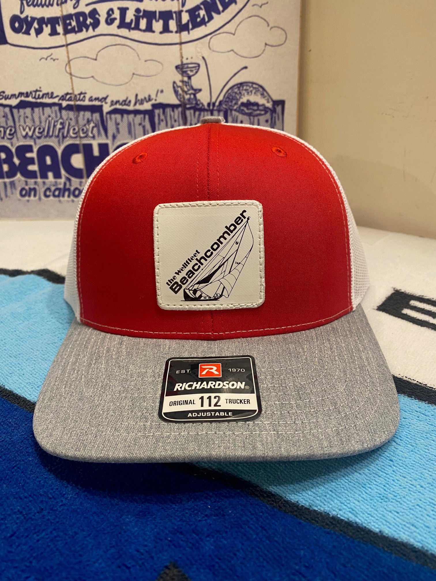 Our classic sailboat logo on a leather patch on a Richardson 112 Trucker hat.
